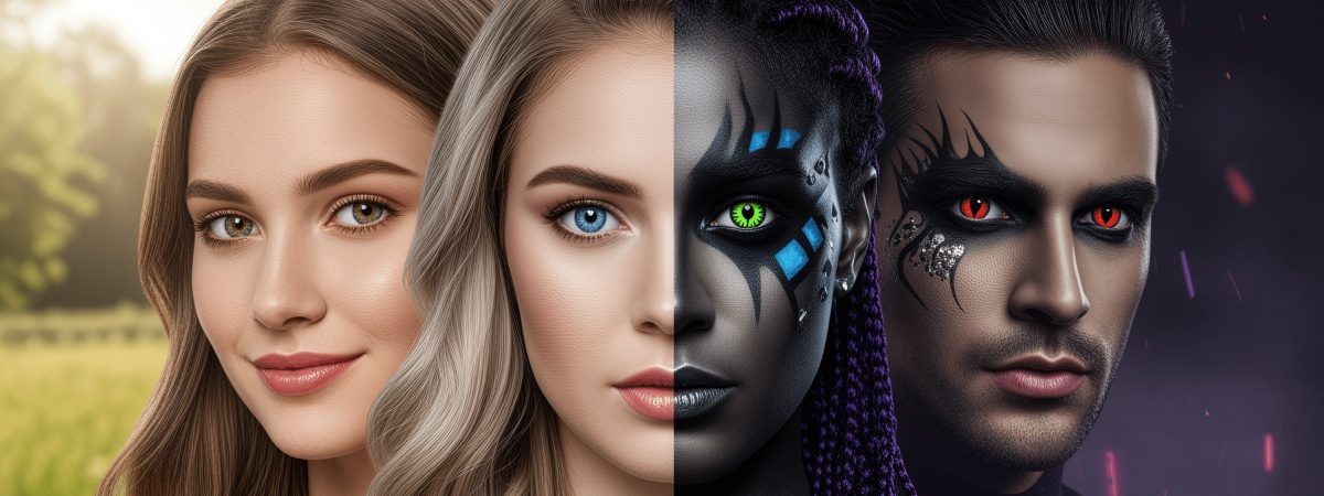 Halloween lenses – create a bold, eye-catching look with patterns and designs that are immediately visible. They are typically used for cosplay, parties or Halloween. Most are fully opaque and cover the natural eye colour 100%, resulting in a very intense effect.
