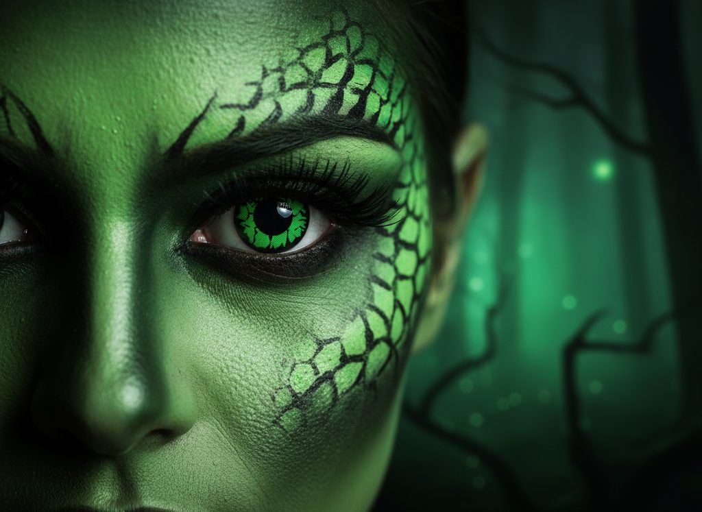 Goblin: non-prescription coloured lenses with a dark and eerie design that gives your eyes a spooky and fantastic look. The ideal choice for cosplay, Halloween, or themed makeup inspired by fantasy worlds and horror characters!