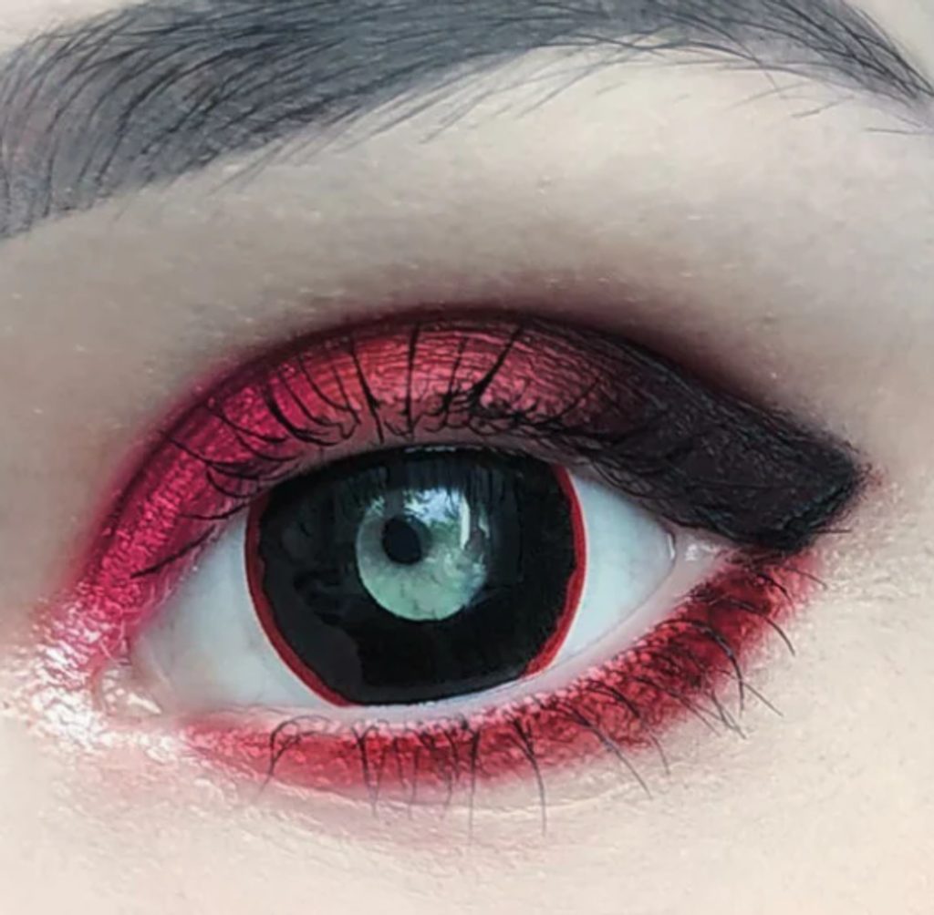 Hell Raiser: non-prescription coloured lenses with a terrifying and demonic design that gives your eyes a dark and spooky look. The perfect choice for cosplay, Halloween, or horror makeup that is sure to grab attention!