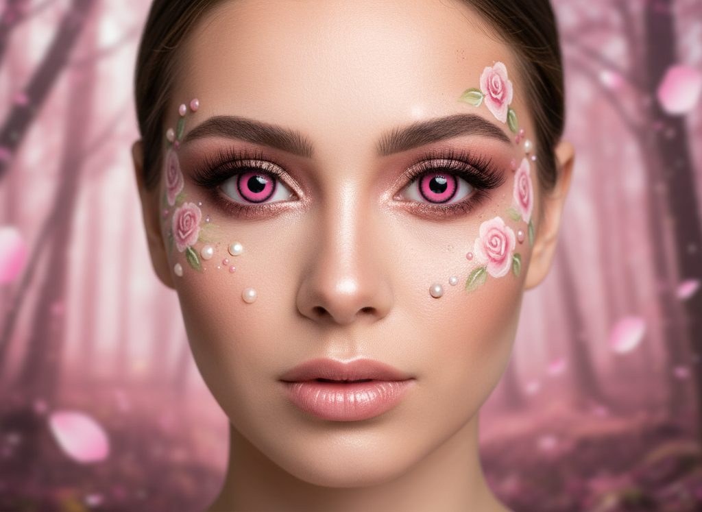 Mystic Rose: non-prescription coloured contact lenses with a subtle pink shade, perfect for cosplay, Halloween, or themed makeup inspired by magic and romantic fantasy worlds!